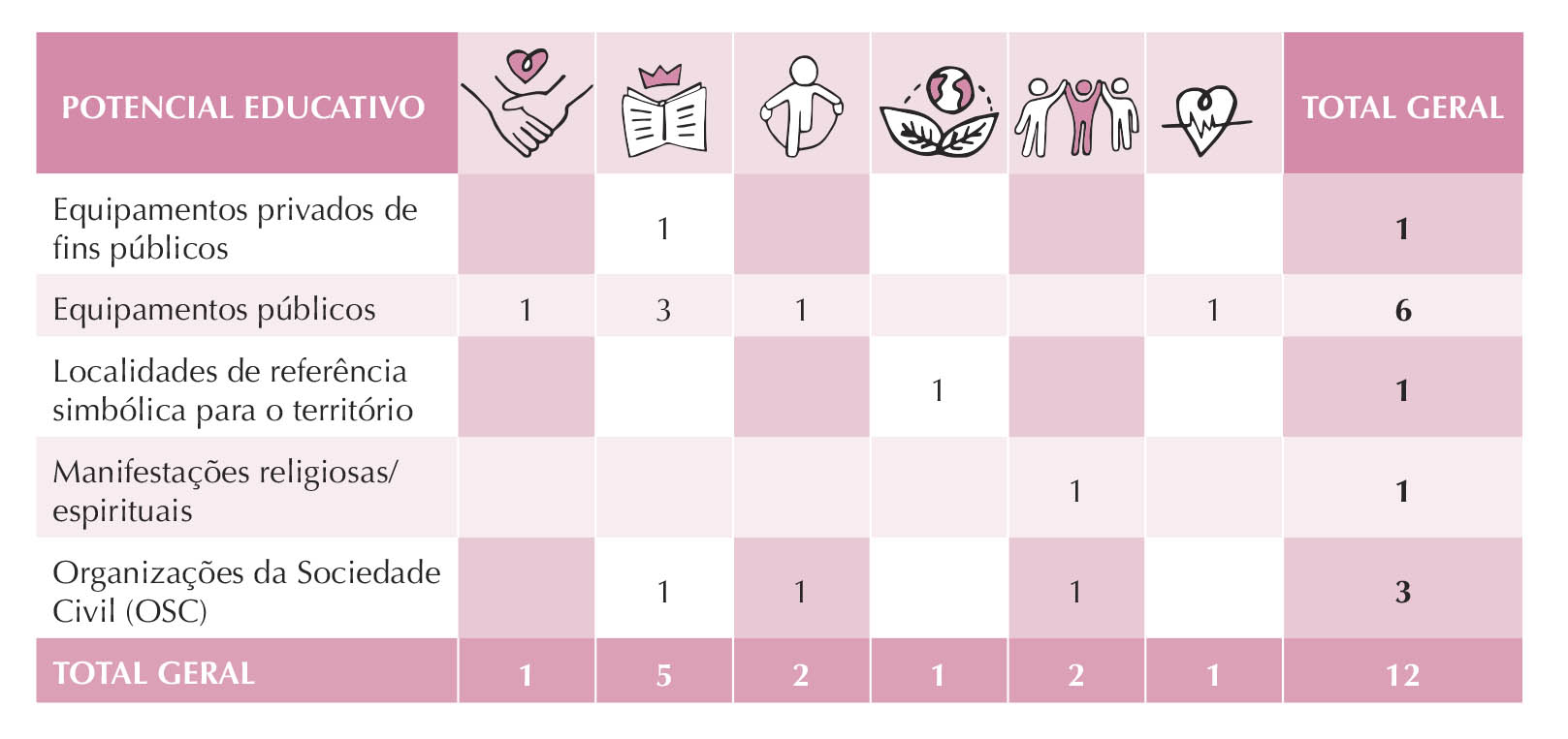 Confira, no mapa, todos os potenciais educativos mapeados para este distrito. Além disso, acesse a tabela com as informações completas de todos os locais.
